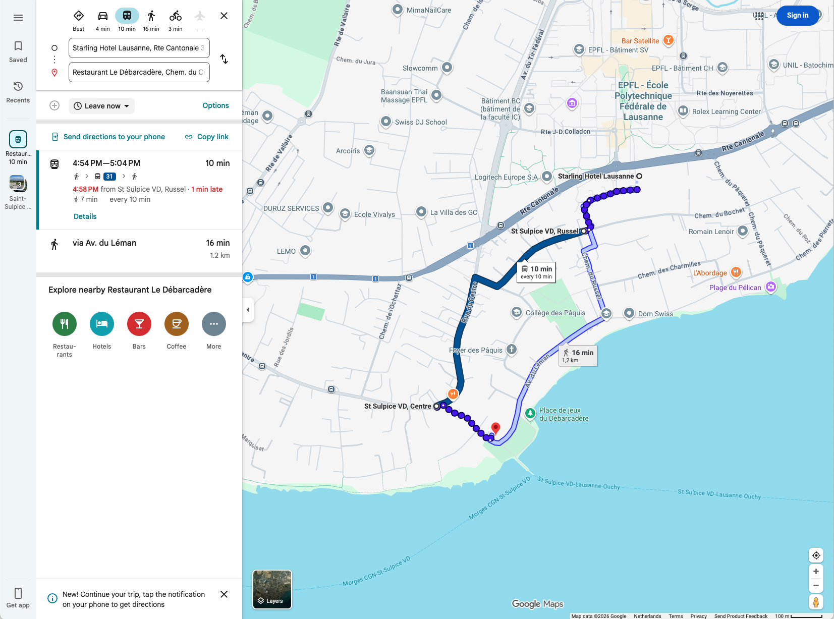 Google informs various ways: walk (~16min) or use a bus to do part of the trip.